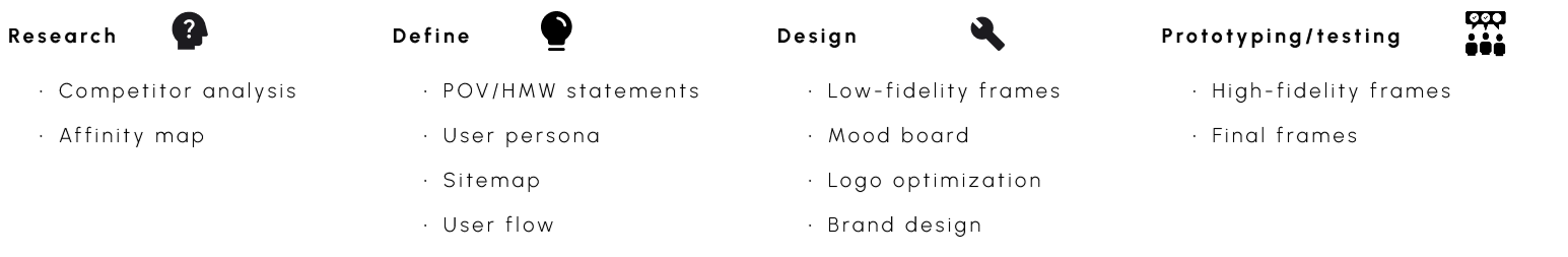 I used the persona, as well as the POV/HMW questions and feedback, to create the list of features I needed sorted by levels of importance: must have, nice to have, and can come later. At least 60% of interviewees had to have said the same thing in order to take precedence, and below that the threshold for being nice to have was 40%. The image below is the summary of these categories.