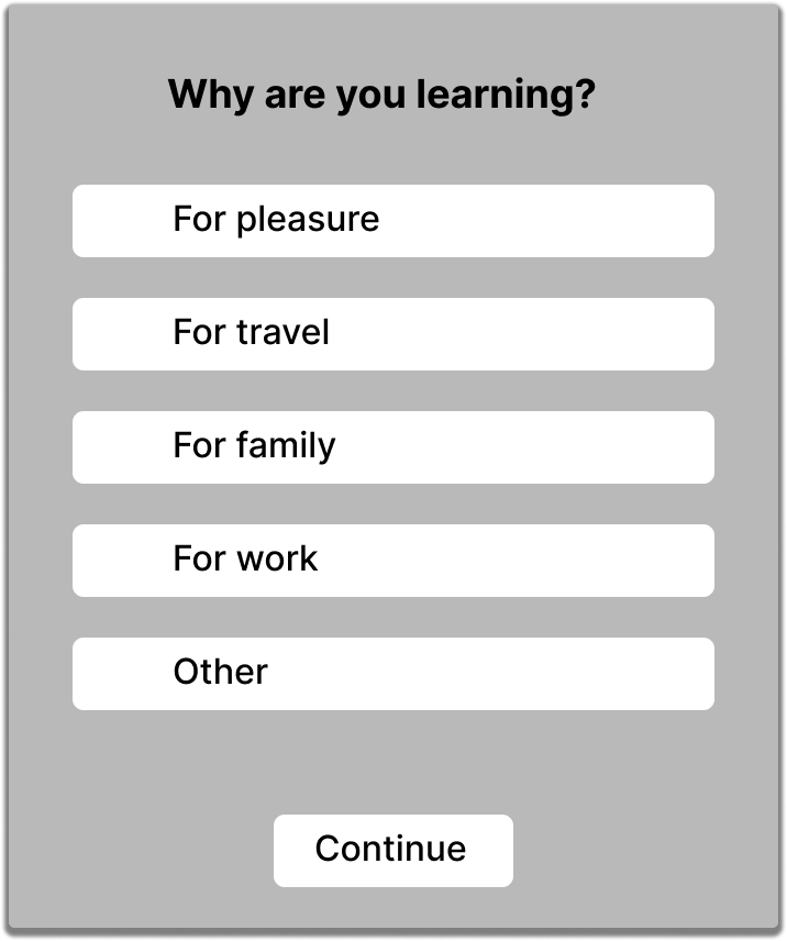 POV: A person committed to learning a new language via an app needs to be able to see they’re making clear progress in all aspects.
