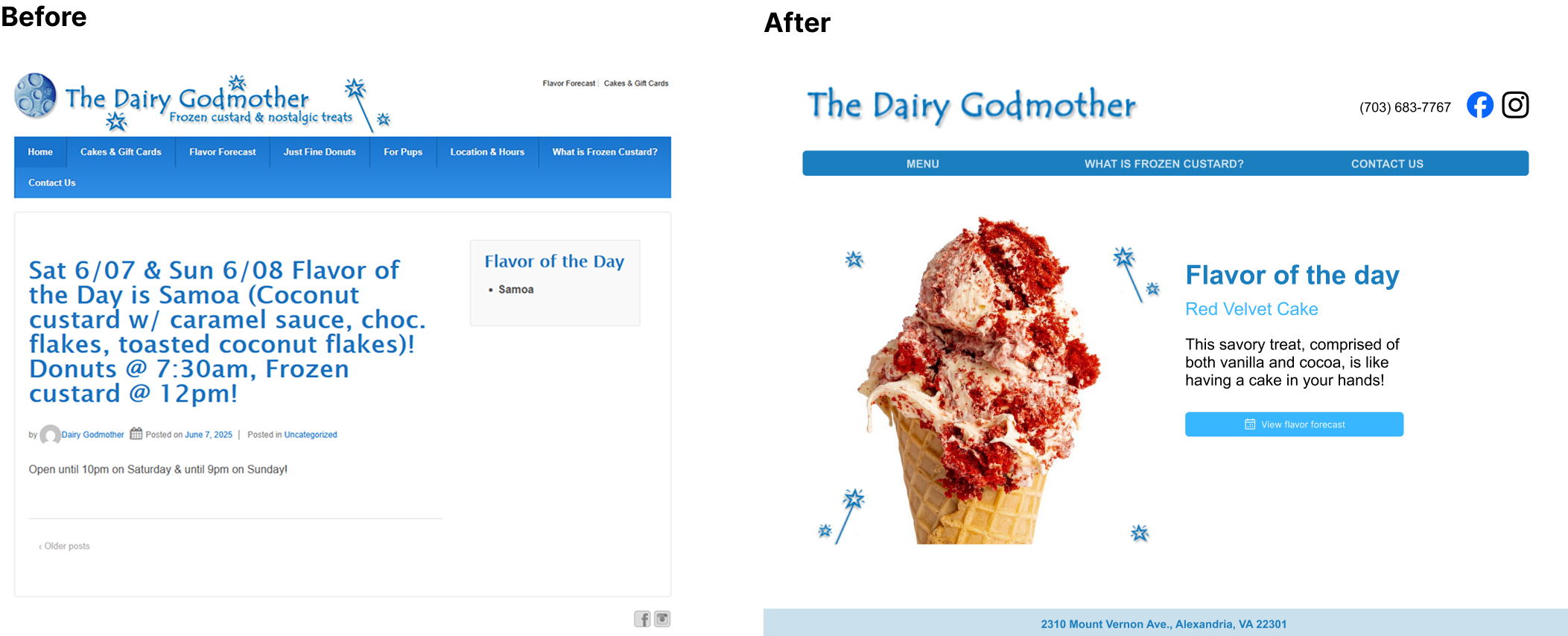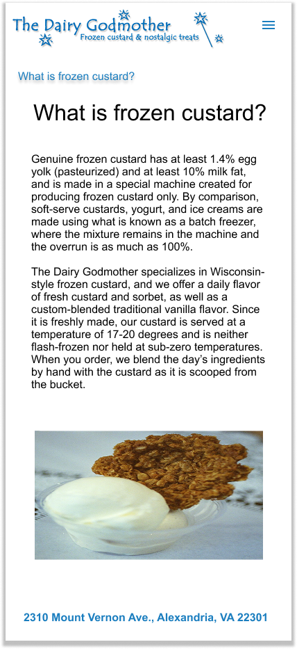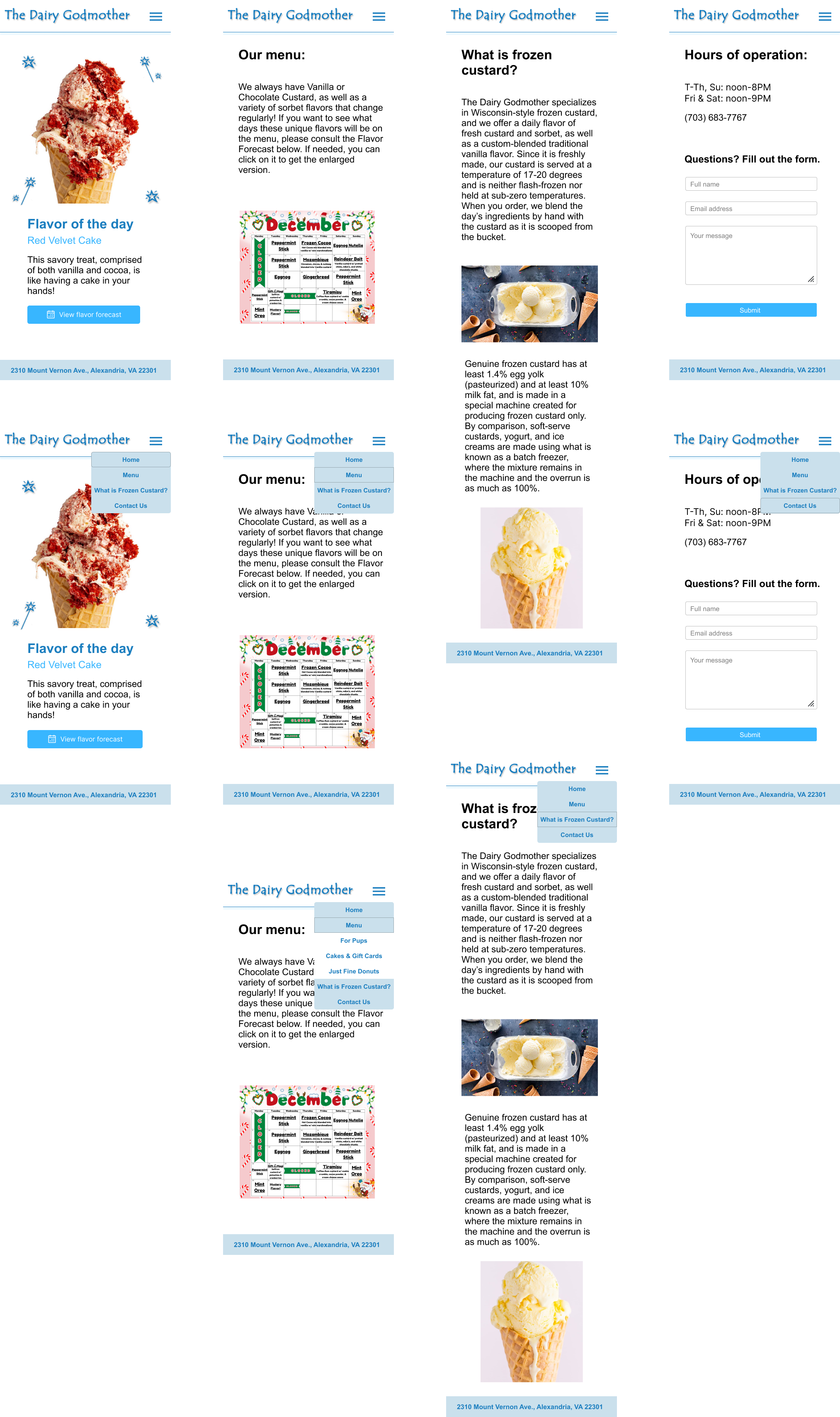 A local frozen custard store, The Dairy Godmother, has a site with responsiveness issues on top of needing a visual redesign.